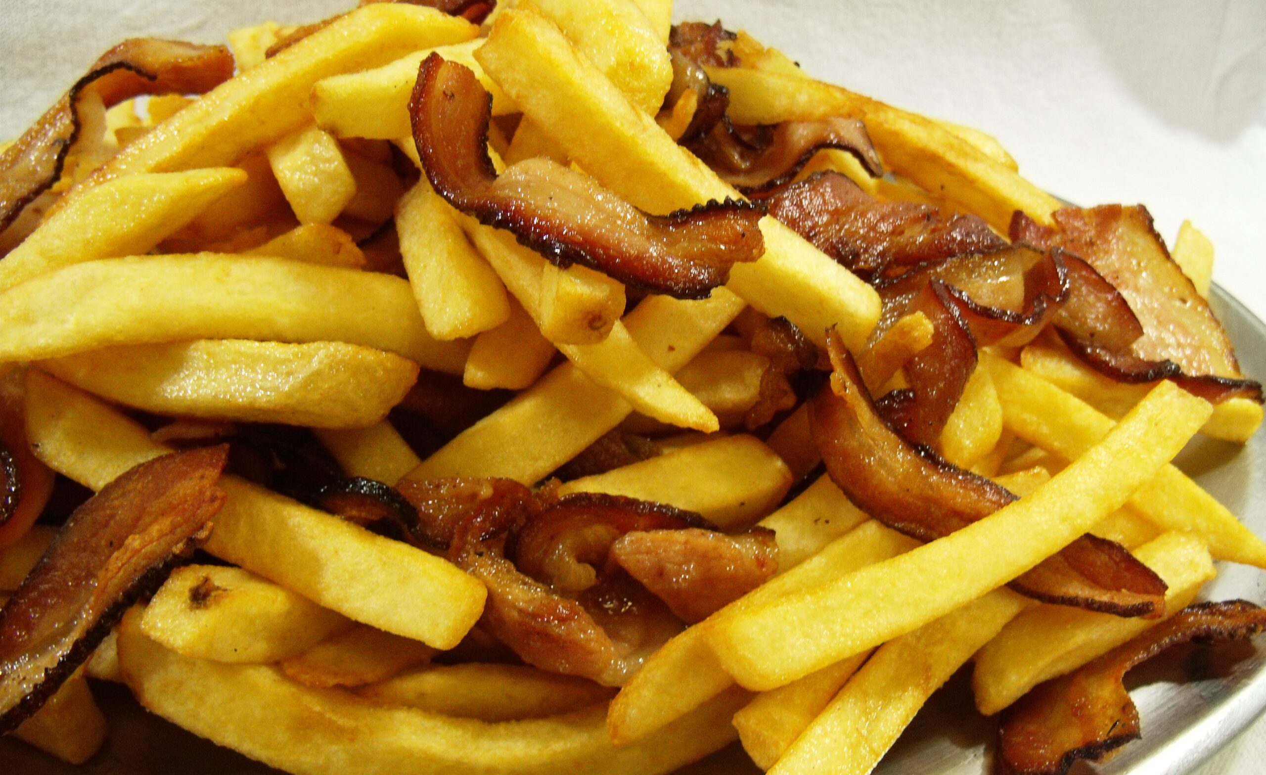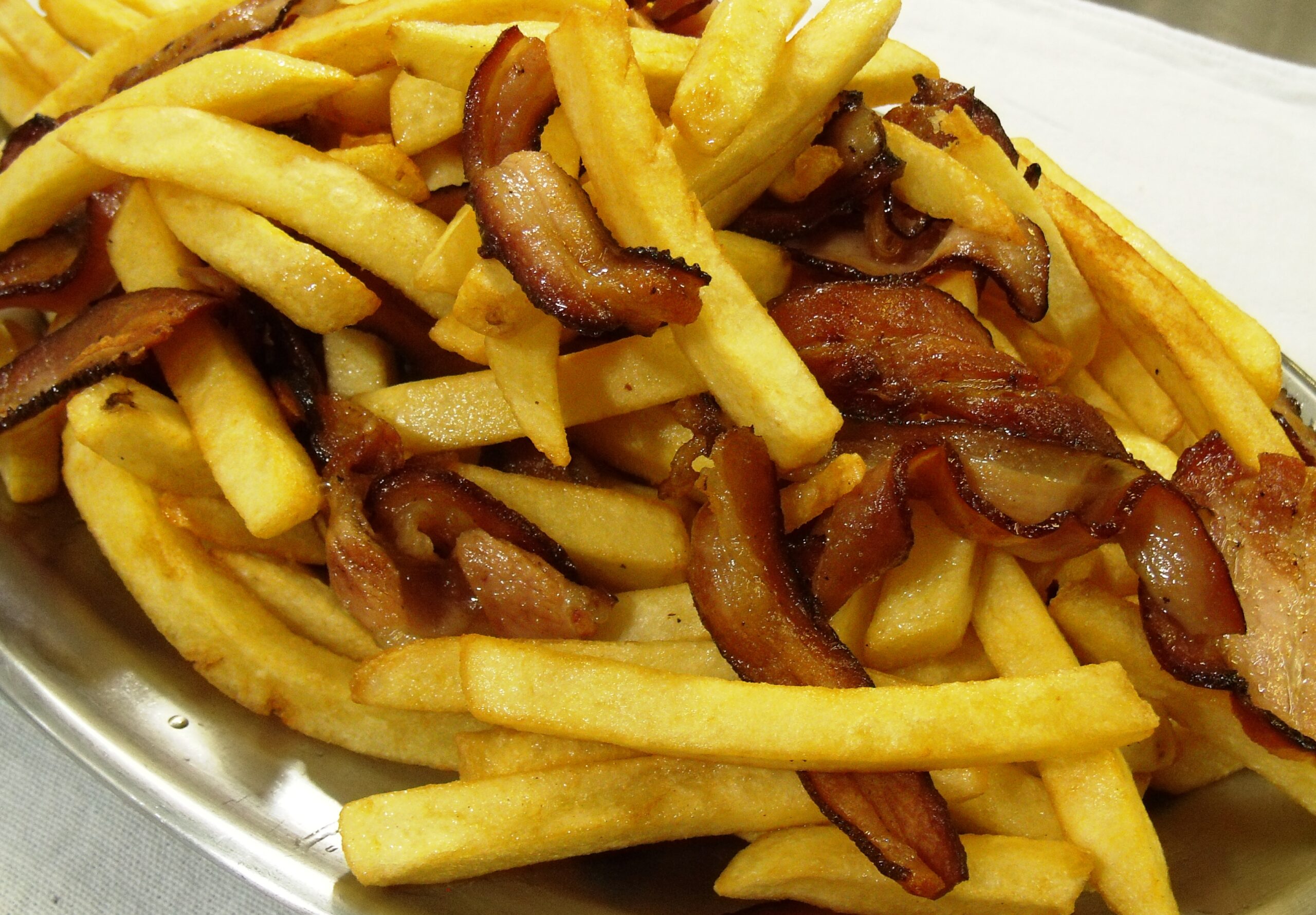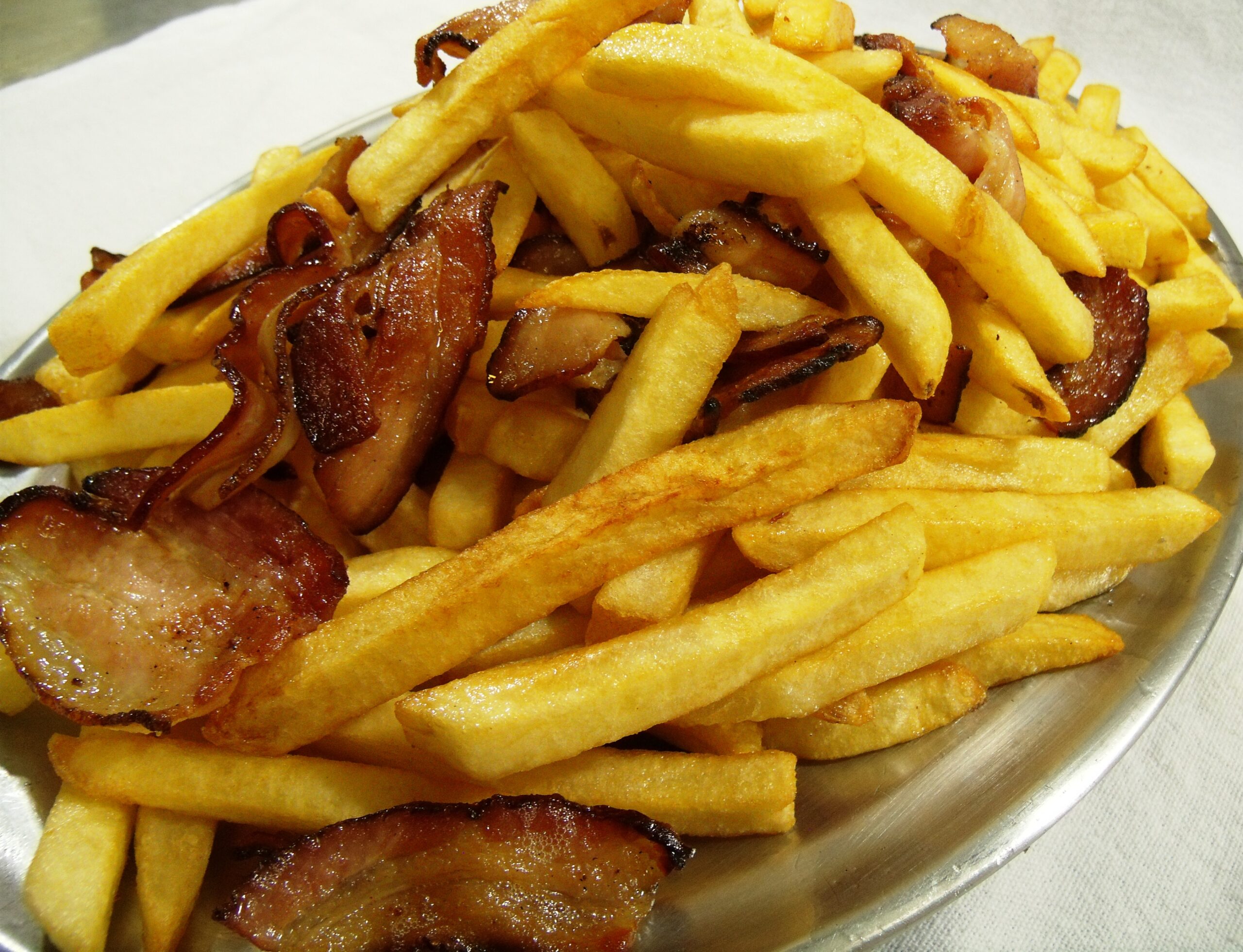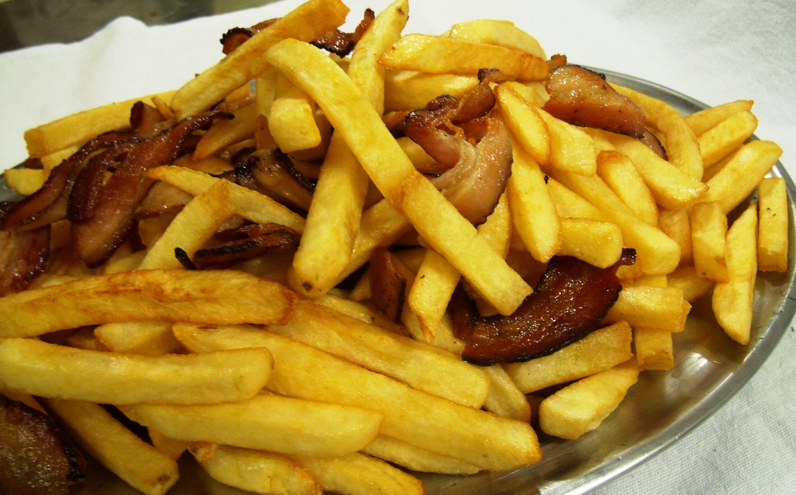 Ingredientes: carne (contra filé), ovo, acompanha arroz, batata frita e salada.