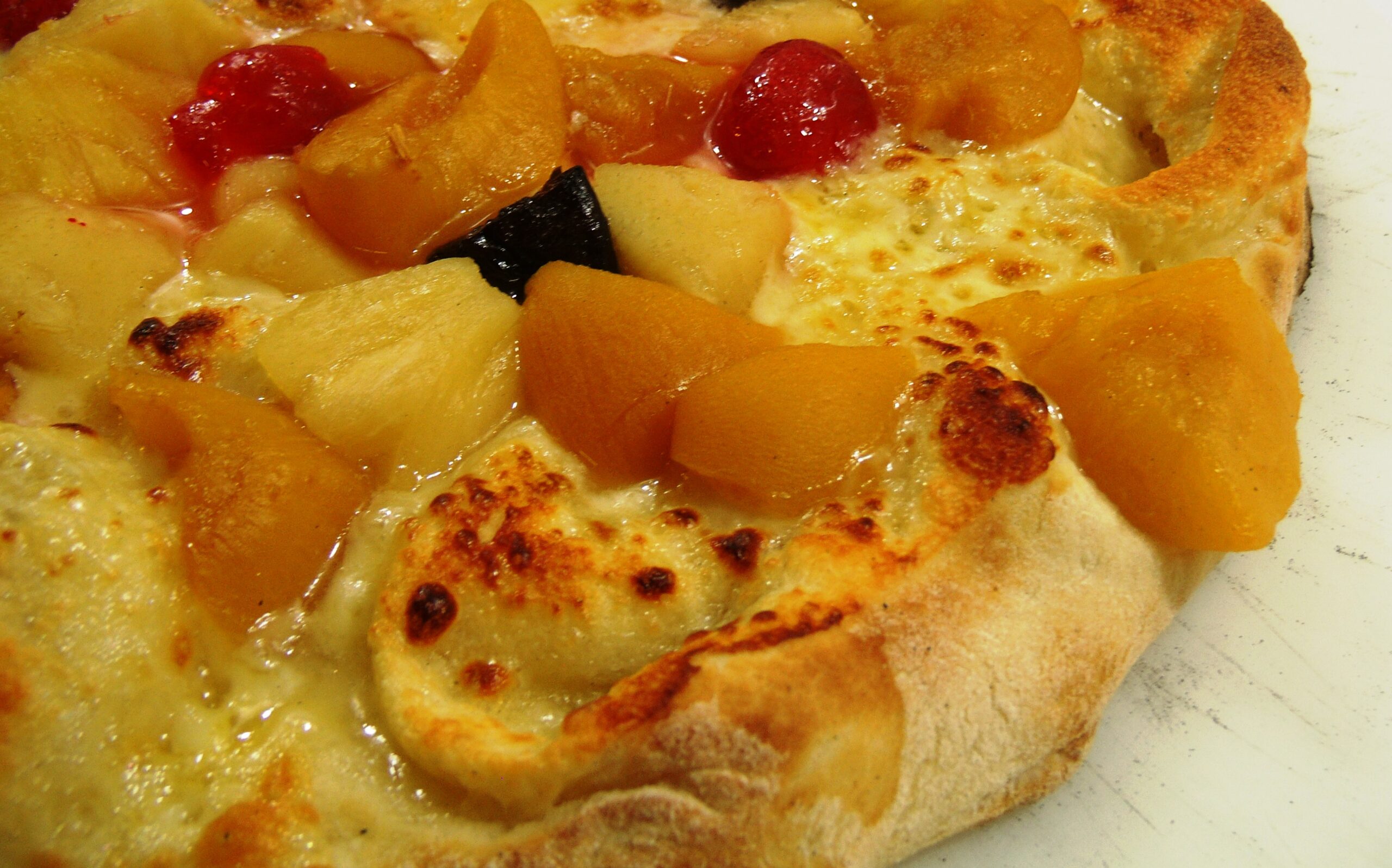 Ingredientes: leite condensado, mussarela, abacaxi, pêssego e figo picados, cereja e ameixa.