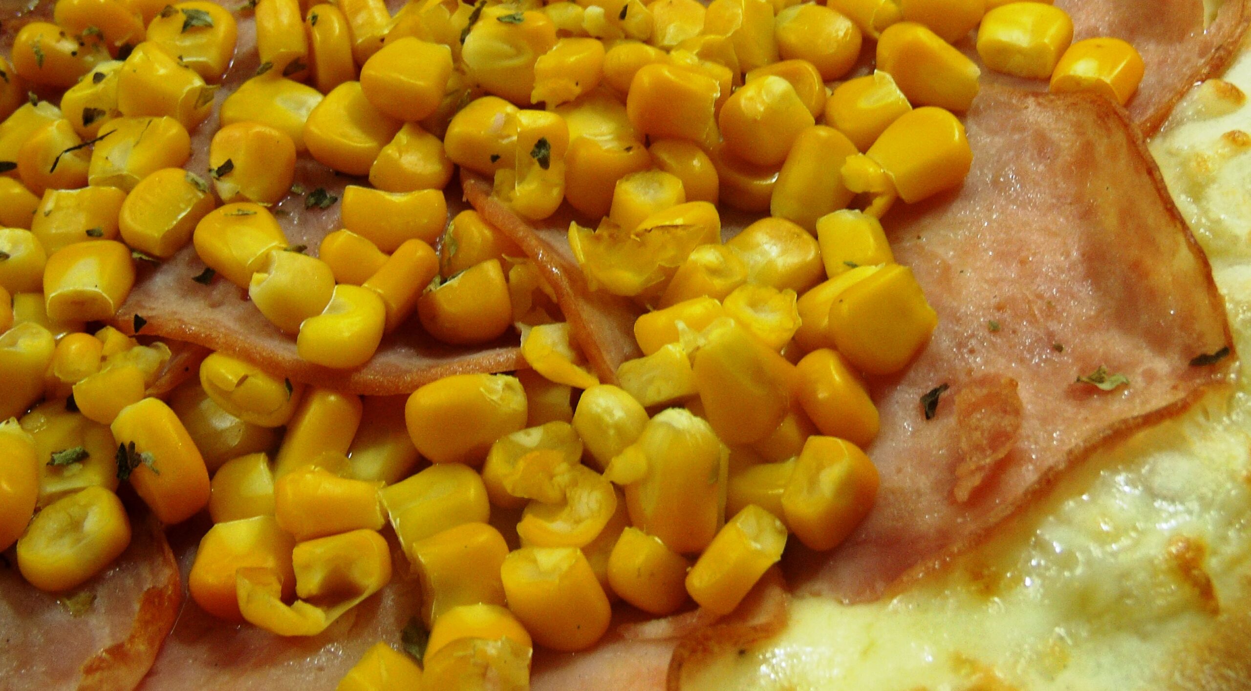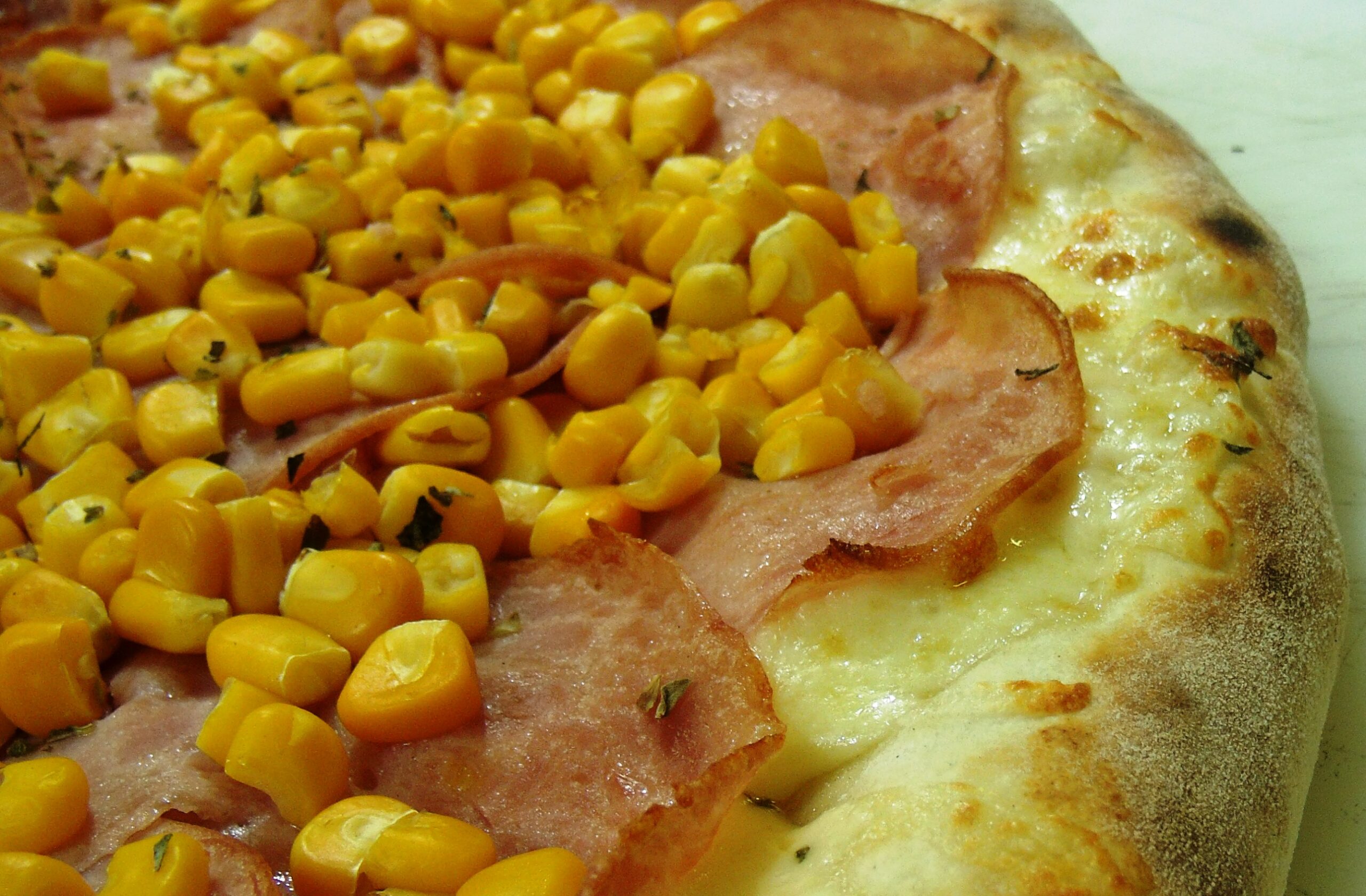 Ingredientes: molho, mussarela, milho, catupiry e orégano.