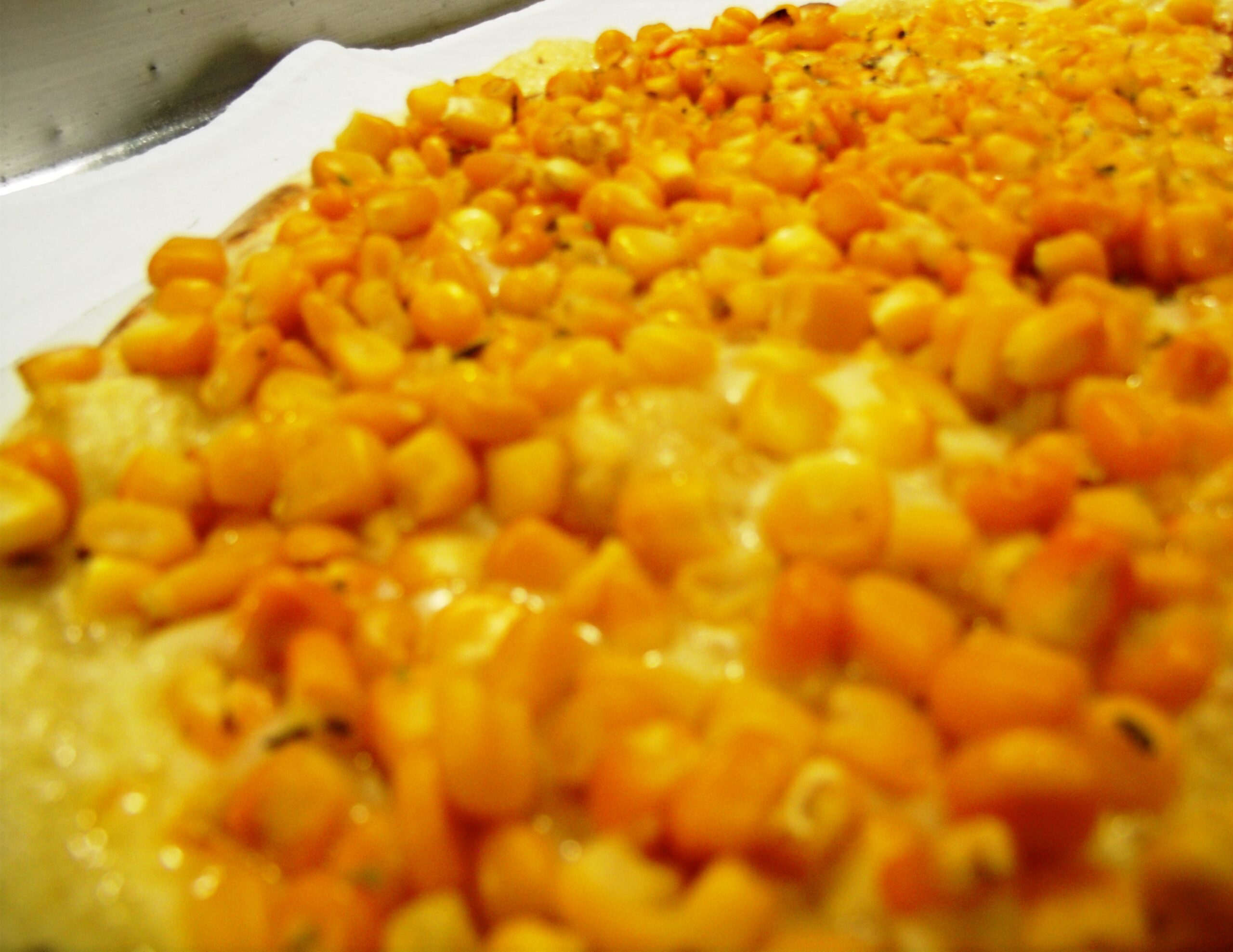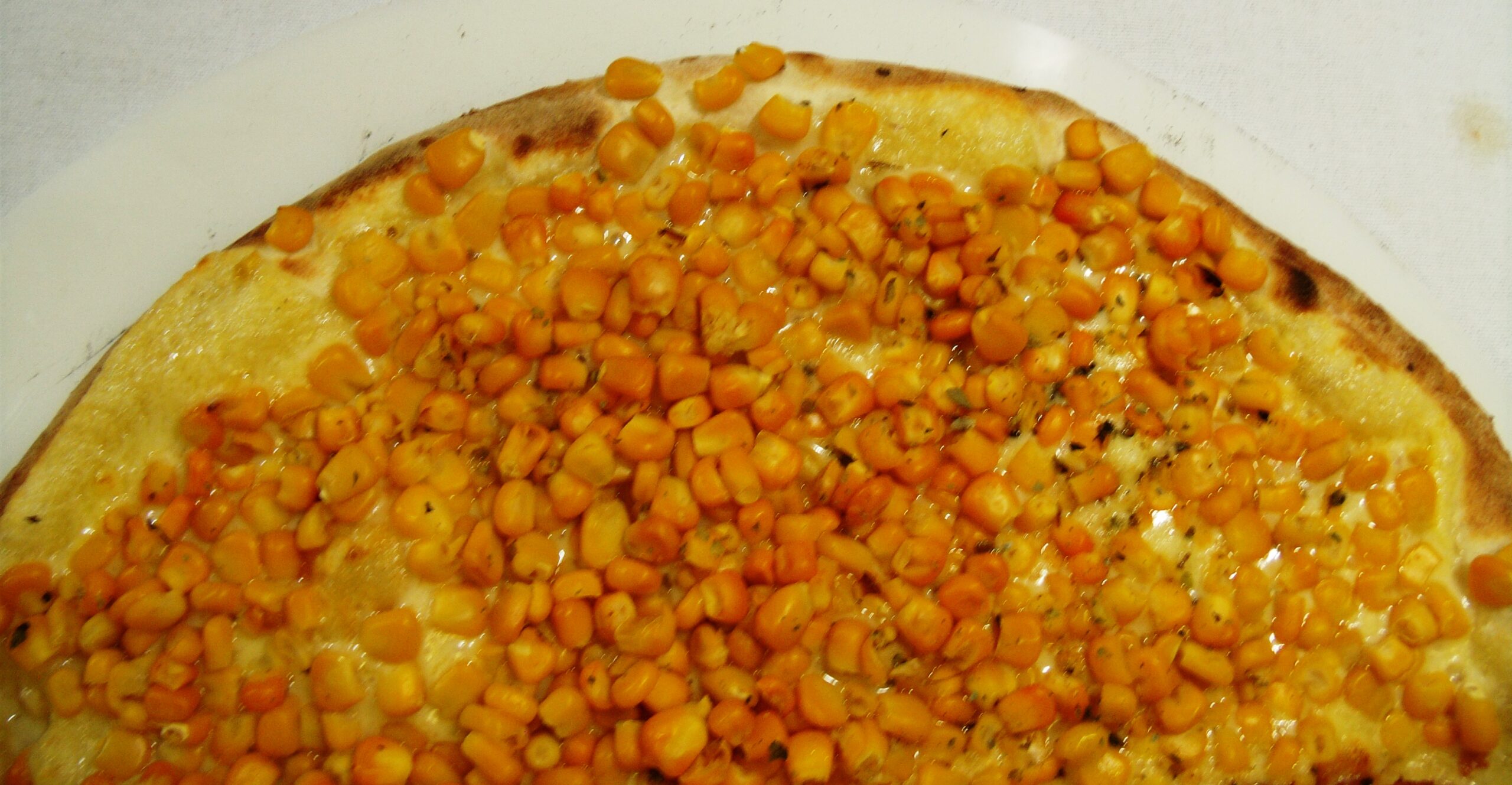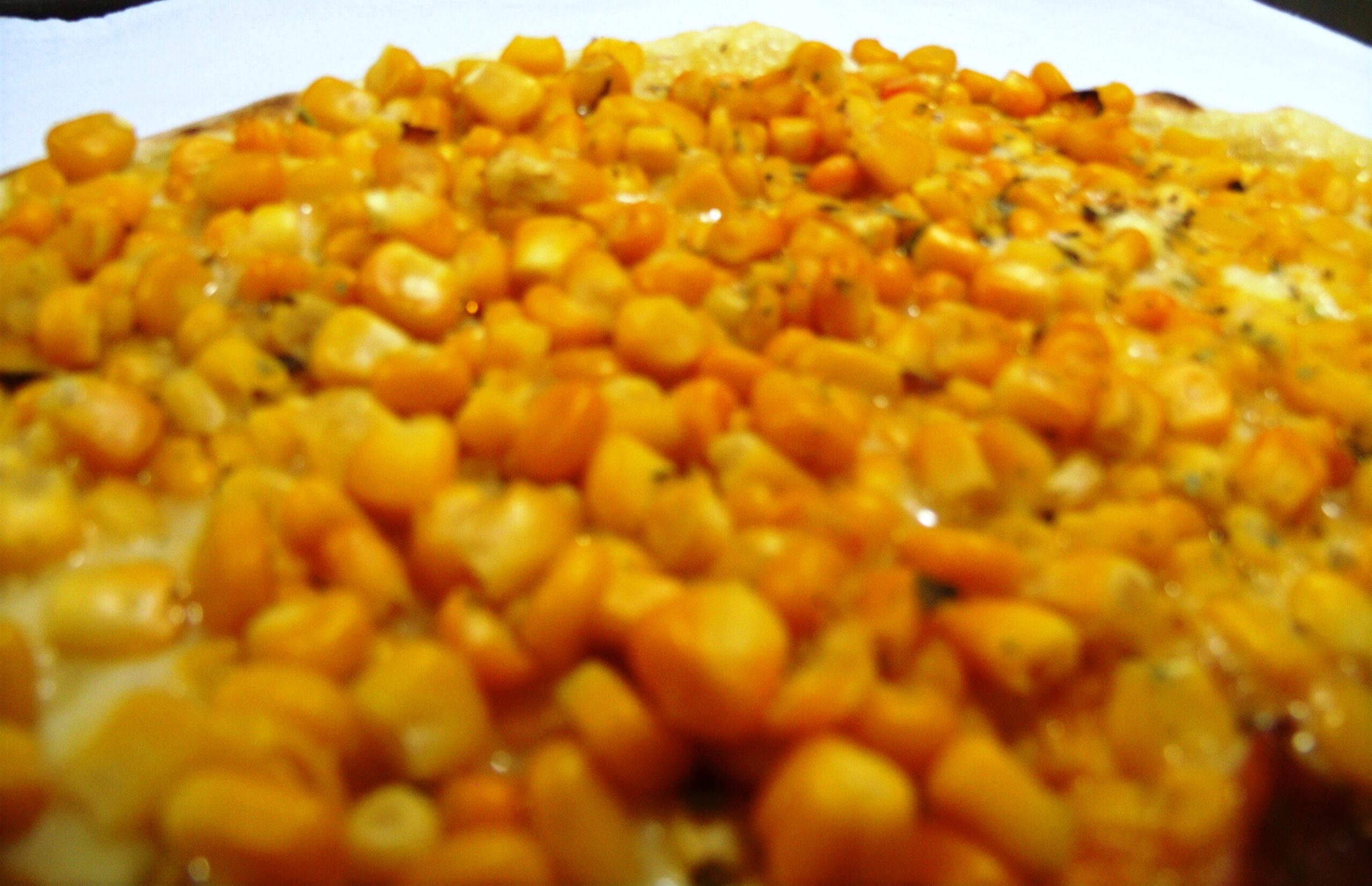 Ingredientes: molho, mussarela, milho e orégano.